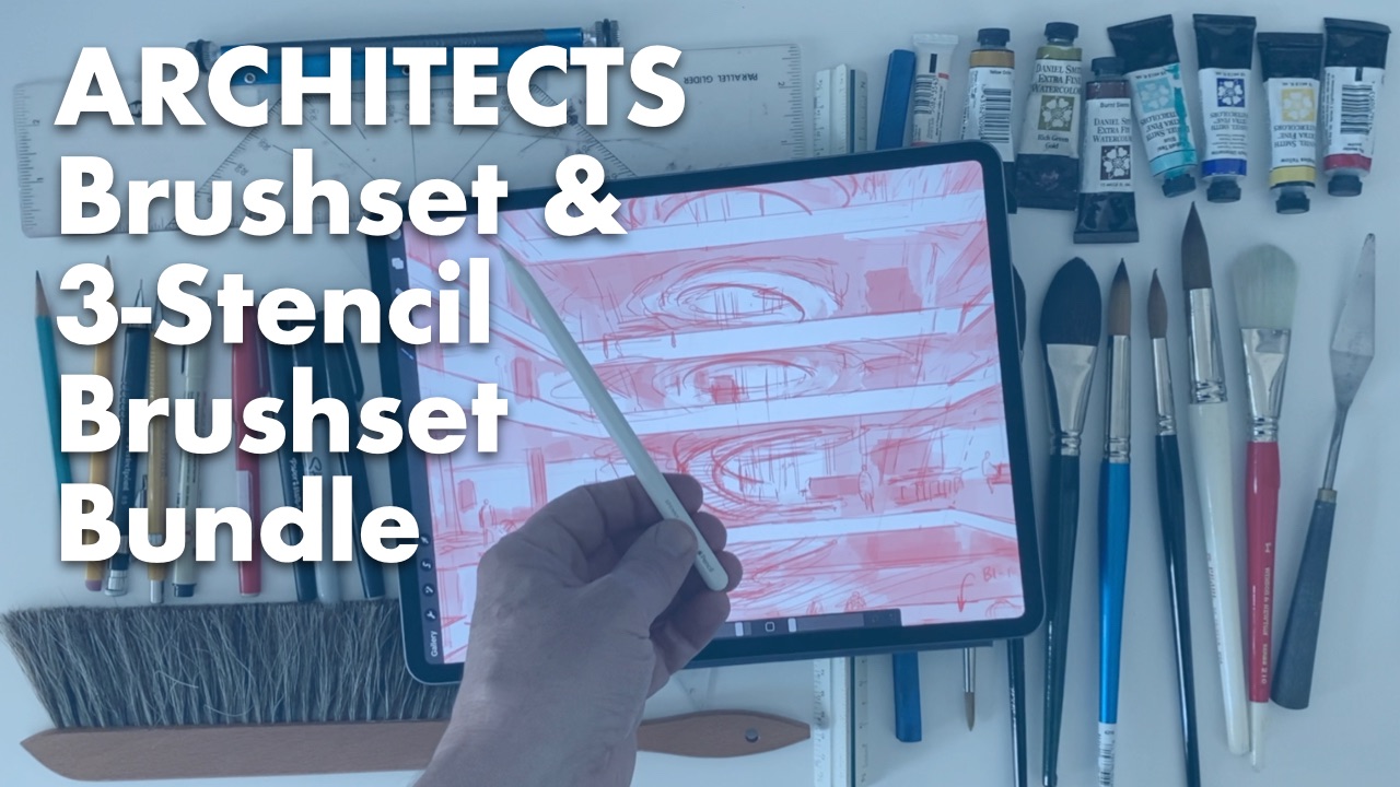 Architect & Designer Brushset PLUS 3-Stencil Brushset Bundle