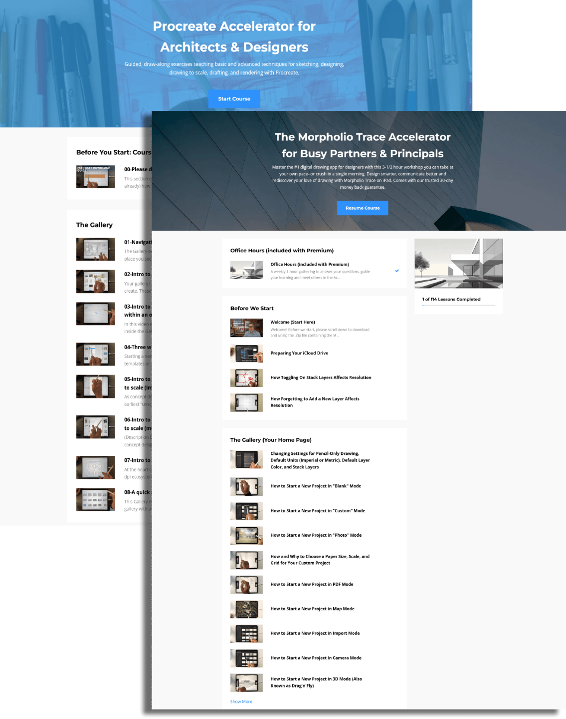 As a bonus, annual members receive the courses I created to help you get up to speed with both apps, part of the full iPad for Architects course library included with the annual membership.